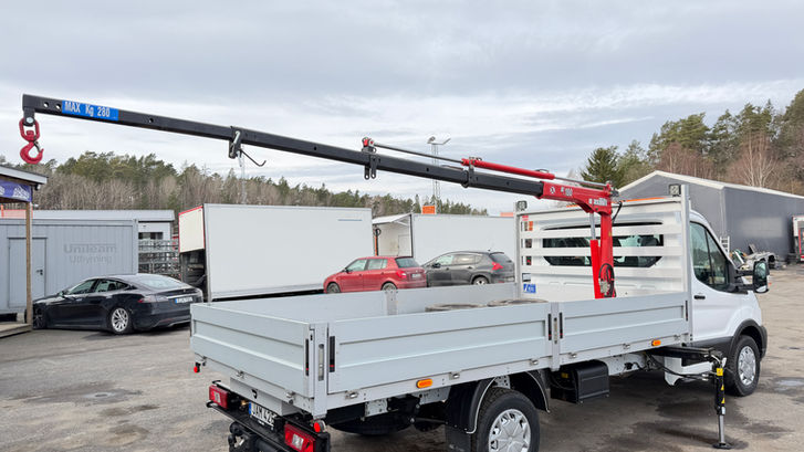 Ford Transit 170hk, 4,1m Flak med Kran ML 180, drag, 2025